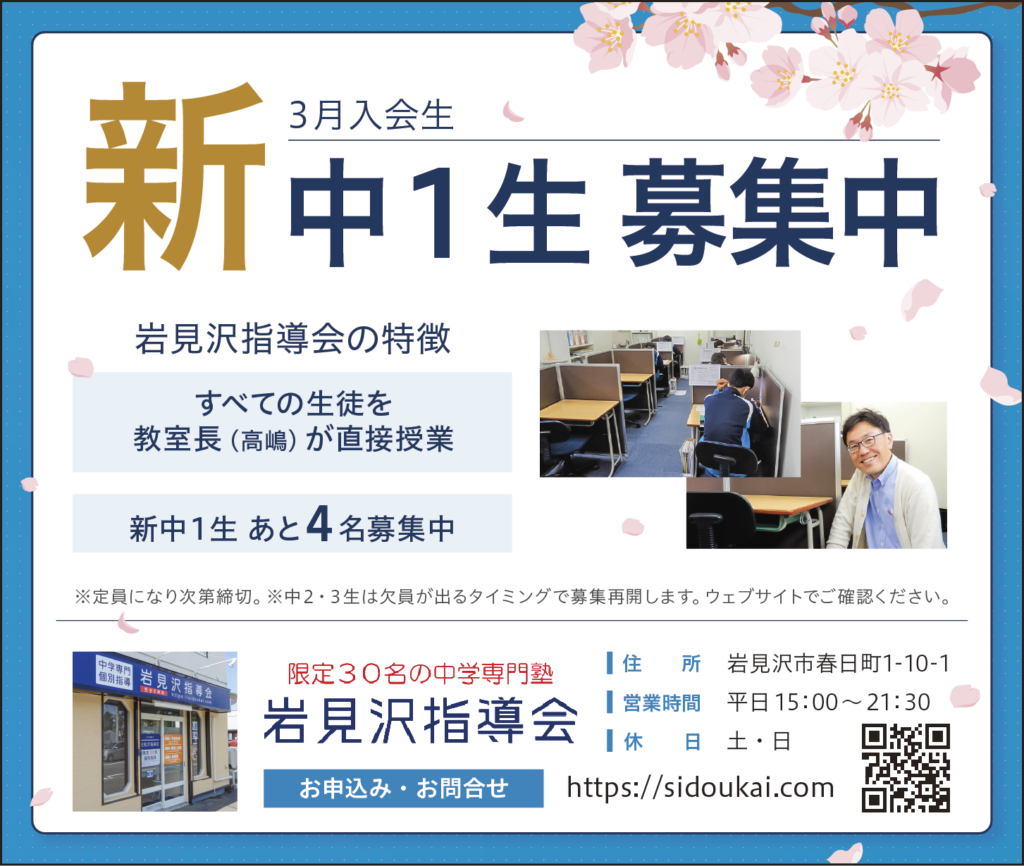 岩見沢指導会は「限定30名」の中学専門塾です。定員になり次第、募集を停止させていただきます。あらかじめご了承ください。